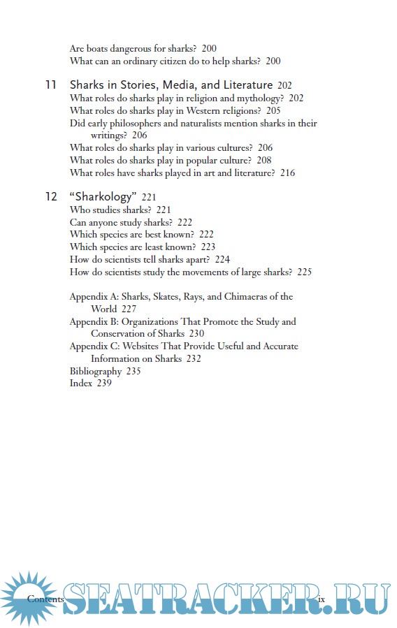 Description: Answering every conceivable question about sharks, authors Gene Helfman and George H. Burgess describe the fascinating biology, behavior, diversity (there are more than 1,000 species worldwide), and cultural importance of sharks, their close relationship to skates and rays, and their critical role in healthy ecosystems. Helfman and Burgess take readers on a round-the-world tour of shark habitats, which include oceans as well as lakes and even rivers (as far up the Mississippi as St. Louis). They describe huge, ferocious predators like (Great) White and Tiger sharks and species such as Basking and Whale sharks that feed on microscopic prey yet can grow to lengths of more than 40 feet. The mysterious and powerful Greenland shark, the authors explain, reaches a weight of 2,200 pounds on a diet of seal flesh. Small (less than 2-foot long) Cookiecutter sharks attack other sharks and even take a chunk out of the occasional swimmer. Despite our natural fascination with sharks, we have become their worst enemy. Many shark species are in serious decline and a number are threatened with extinction as a result of overfishing and persecution. Sharks: The Animal Answer Guide presents a perfect mix of current science, history, anthropology, intriguing facts, and gripping photographs. Whether your fascination with sharks stems from fear or curiosity, your knowledge of these animals will improve immensely when you consult this book.