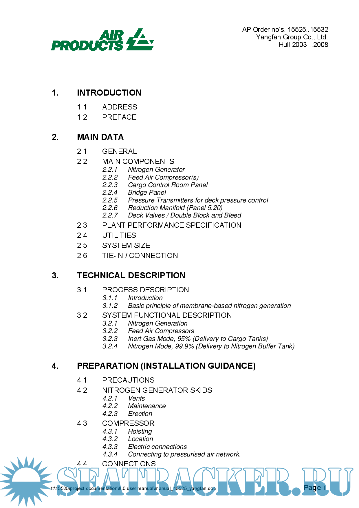 Description: Marine Nitrogen Generator - Mrmbranr Technology - Operation & Maintenance Manual
