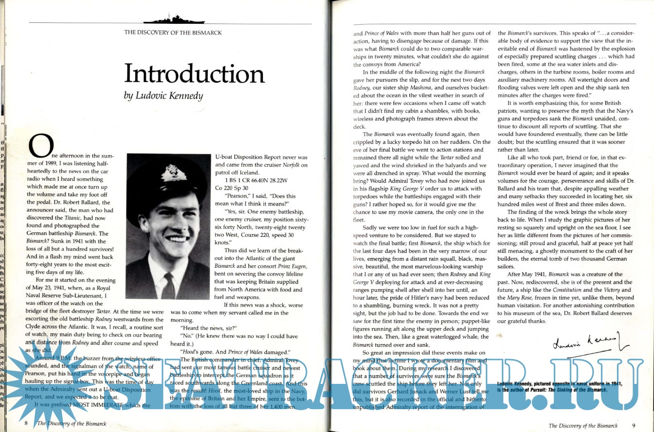 Year: 1990 Language: english Author: Robert D. Ballard Genre: History Publisher: Madison Press Books ISBN: 978-0340529768 Format: PDF Quality: Scanned pages Pages count: 121 Description: Using a new system of underwater exploration technology, the author and his team have located the Bismarck off the Atlantic coast of France. In a first person account of his work, the author recounts the history of the German warship. The author's previous books include "Exploring the Titanic". Additional info: Germany's greatest battleship surrenders her secrets.