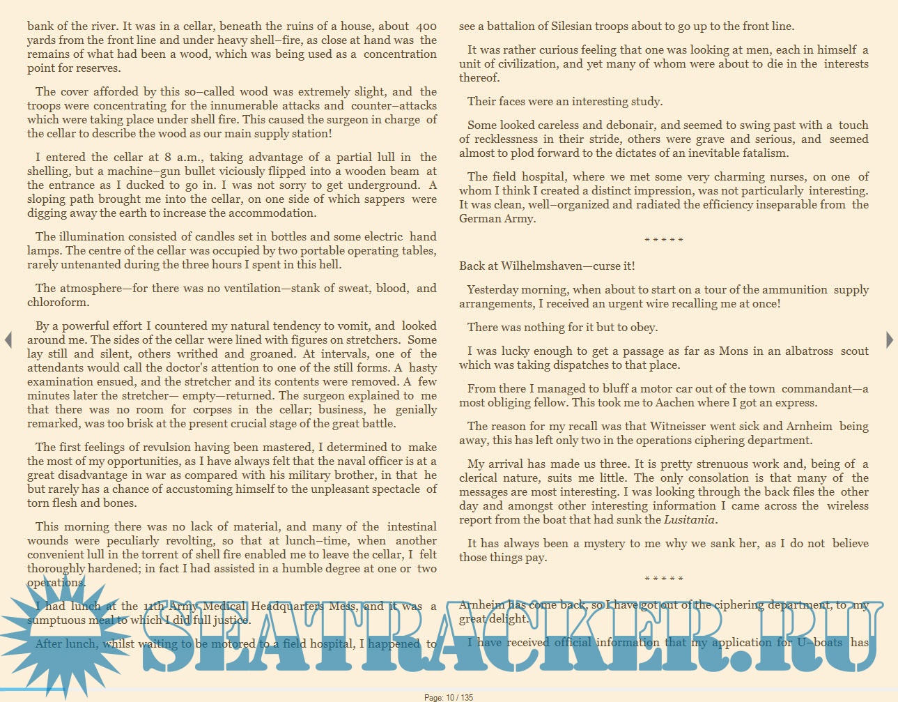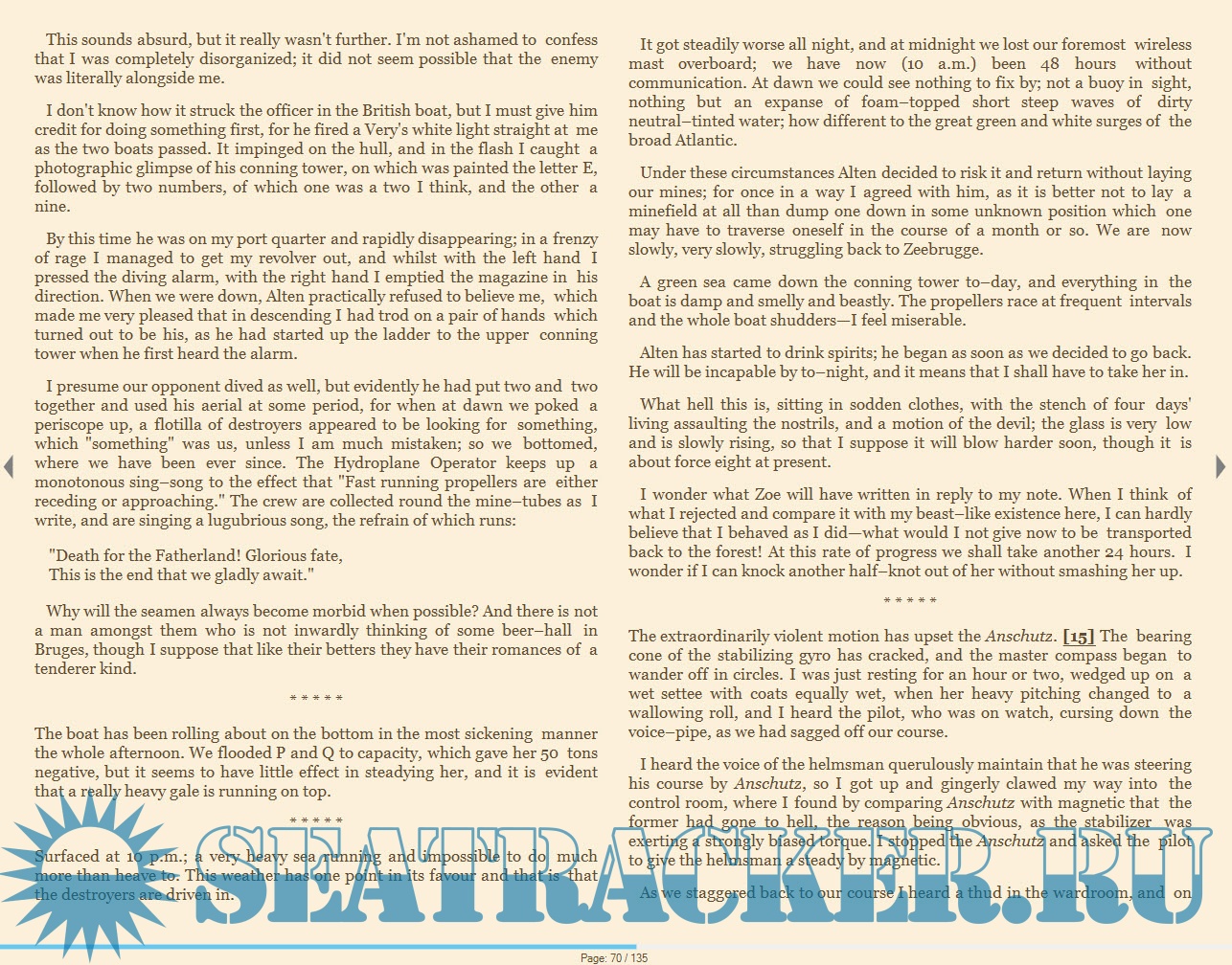 Description: The diary (translated into English) of a World War One U-Boat commander. As well as being a fascinating glimpse of life on the German U-boats during the intense submarine blockade, this also reminds us there were humans involved - on both sides of the action - as we read too of the intimate thoughts and intense love of a man longing for his sweetheart.