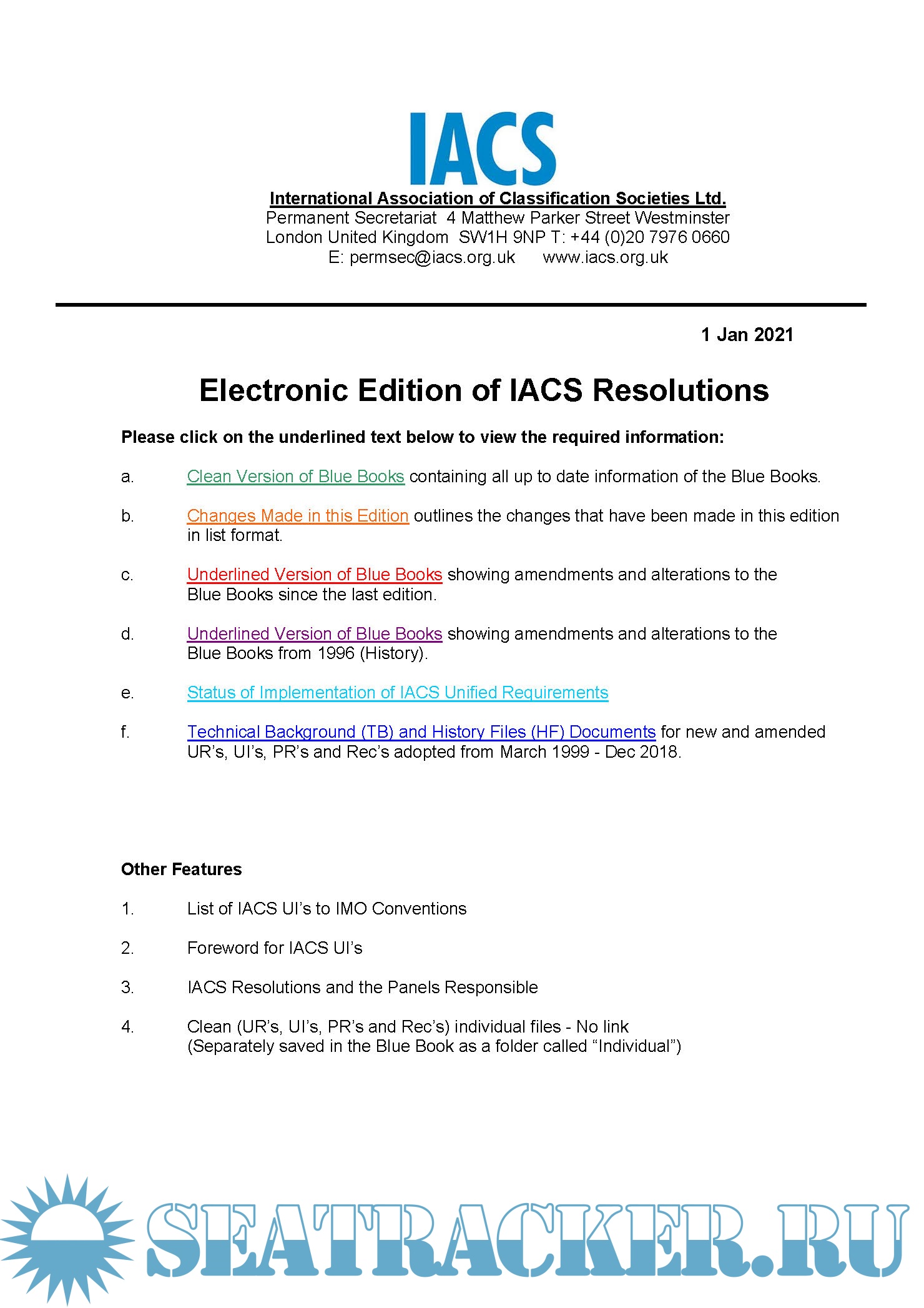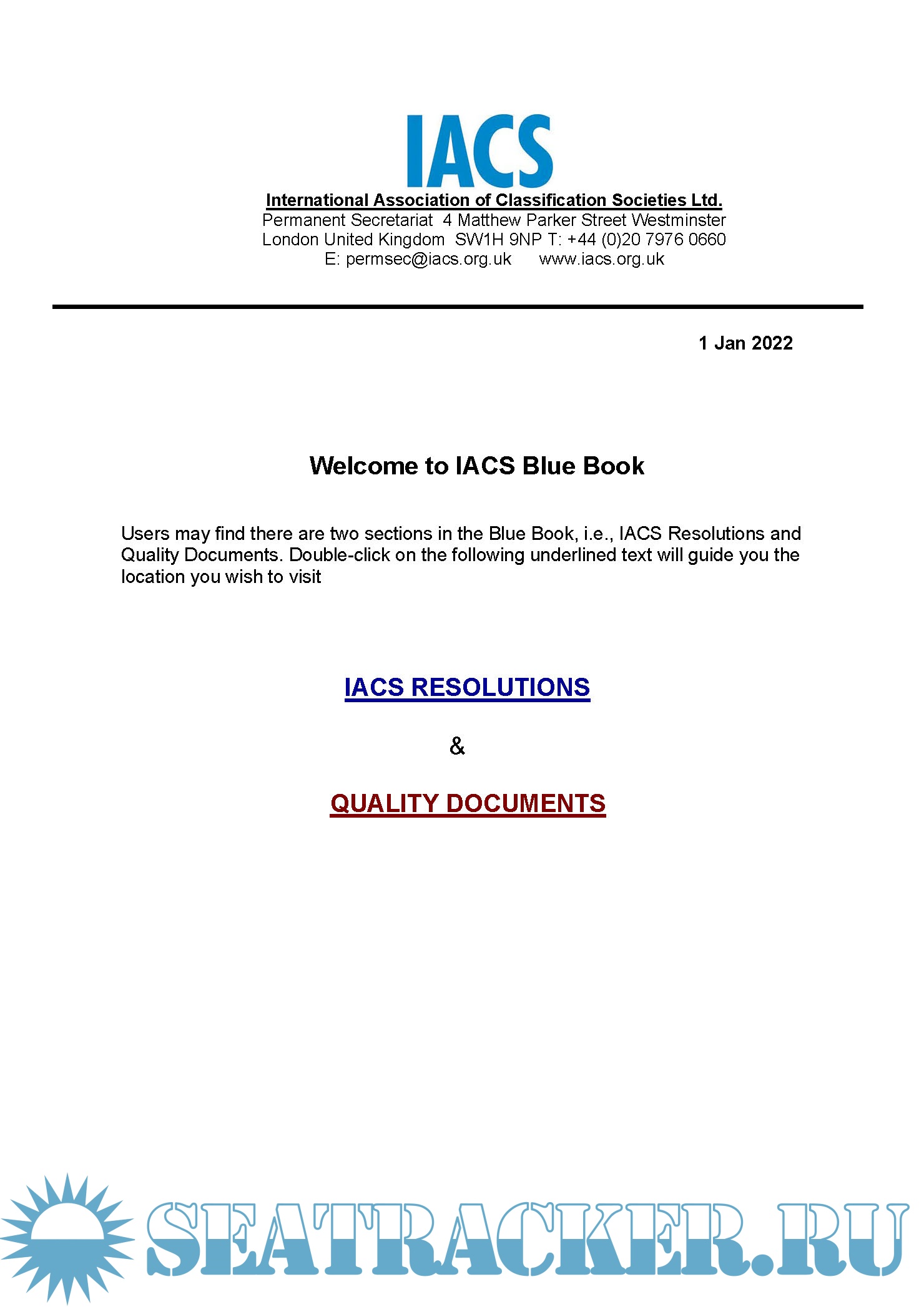 Description: "2022 Blue Book" contains the latest adopted IACS publications as on 1 January 2022 as well as previous revisions of IACS publications and historical data. The Blue Book is updated and published once a year only, next Blue Book will be issued in January 2023.