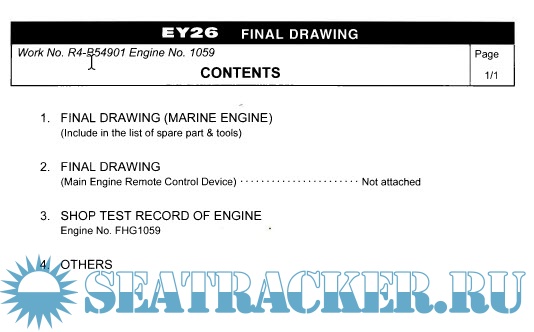 Description: Include FINAL DRAWING (MARINE ENGINE) in the list of spare part & tools + Main Engine Remote Control Device + SHOP TEST RECORD OF ENGINE