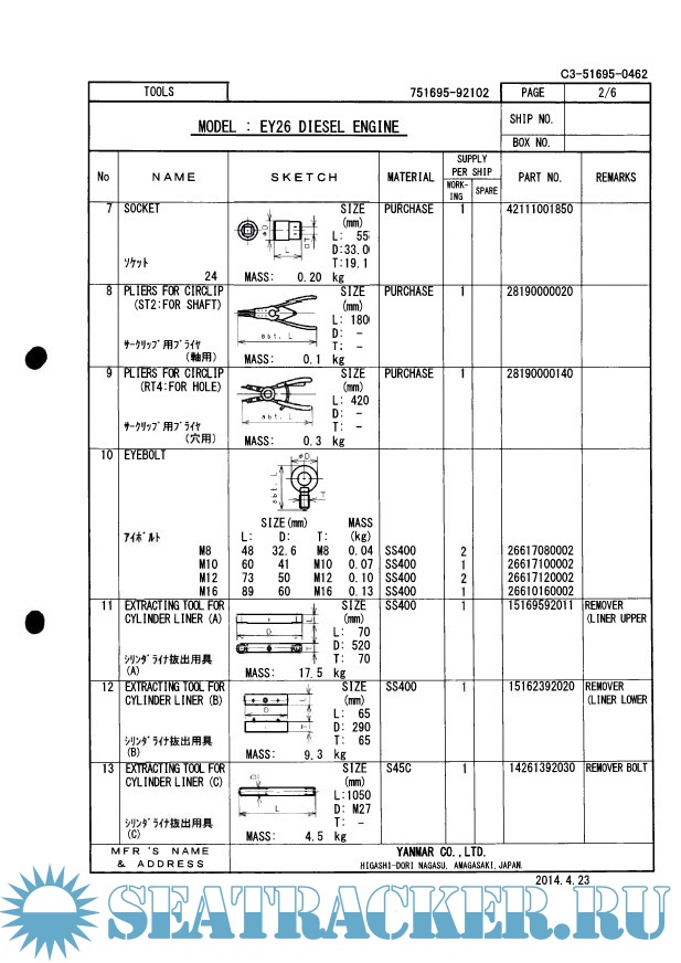 Year: 2015 Language: english Author: Yanmar Genre: Manual Publisher: Yanmar Format: PDF Quality: Scanned pages + text layer Pages count: 177 Description: Include FINAL DRAWING (MARINE ENGINE) in the list of spare part & tools + Main Engine Remote Control Device + SHOP TEST RECORD OF ENGINE