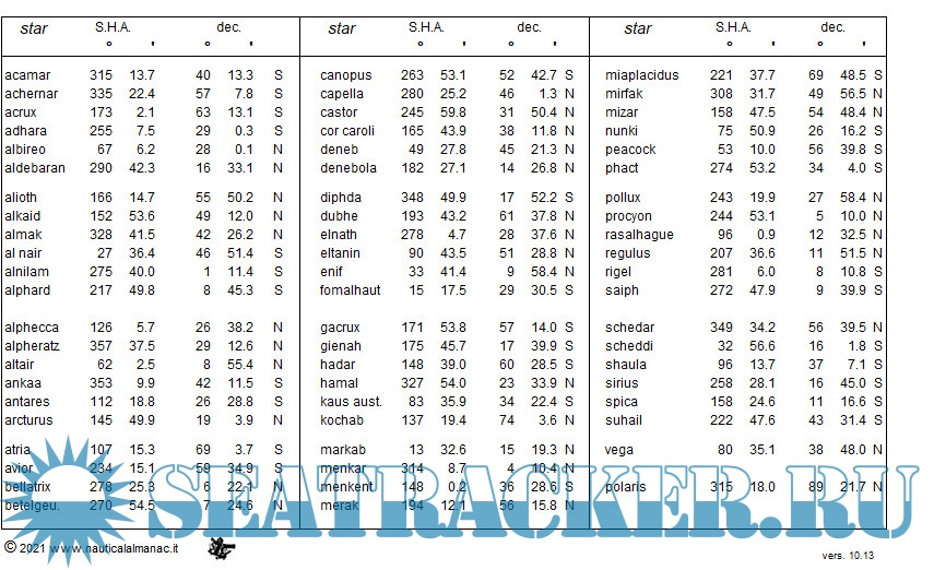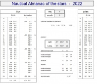 Nautical Almanac of the stars (Excel format) 2022