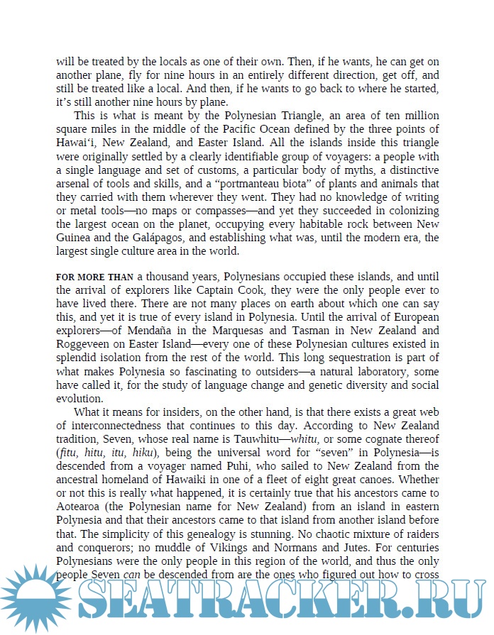 Year: 2019 Language: english Author: Christina Thompson Genre: History Publisher: Harper Collins Edition: 1st ISBN: 978-0-06-206087-7 Format: PDF Quality: eBook Pages count: 331 Description: A blend of Jared Diamond’s Guns, Germs, and Steel and Simon Winchester’s Pacific, a thrilling intellectual detective story that looks deep into the past to uncover who first settled the islands of the remote Pacific, where they came from, how they got there, and how we know. For more than a millennium, Polynesians have occupied the remotest islands in the Pacific Ocean, a vast triangle stretching from Hawaii to New Zealand to Easter Island. Until the arrival of European explorers they were the only people to have ever lived there. Both the most closely related and the most widely dispersed people in the world before the era of mass migration, Polynesians can trace their roots to a group of epic voyagers who ventured out into the unknown in one of the greatest adventures in human history. How did the earliest Polynesians find and colonize these far-flung islands? How did a people without writing or metal tools conquer the largest ocean in the world? This conundrum, which came to be known as the Problem of Polynesian Origins, emerged in the eighteenth century as one of the great geographical mysteries of mankind. For Christina Thompson, this mystery is personal: her Maori husband and their sons descend directly from these ancient navigators. In Sea People, Thompson explores the fascinating story of these ancestors, as well as those of the many sailors, linguists, archaeologists, folklorists, biologists, and geographers who have puzzled over this history for three hundred years. A masterful mix of history, geography, anthropology, and the science of navigation, Sea People combines the thrill of exploration with the drama of discovery in a vivid tour of one of the most captivating regions in the world. Sea People includes an 8-page photo insert, illustrations throughout, and 2 endpaper maps.
