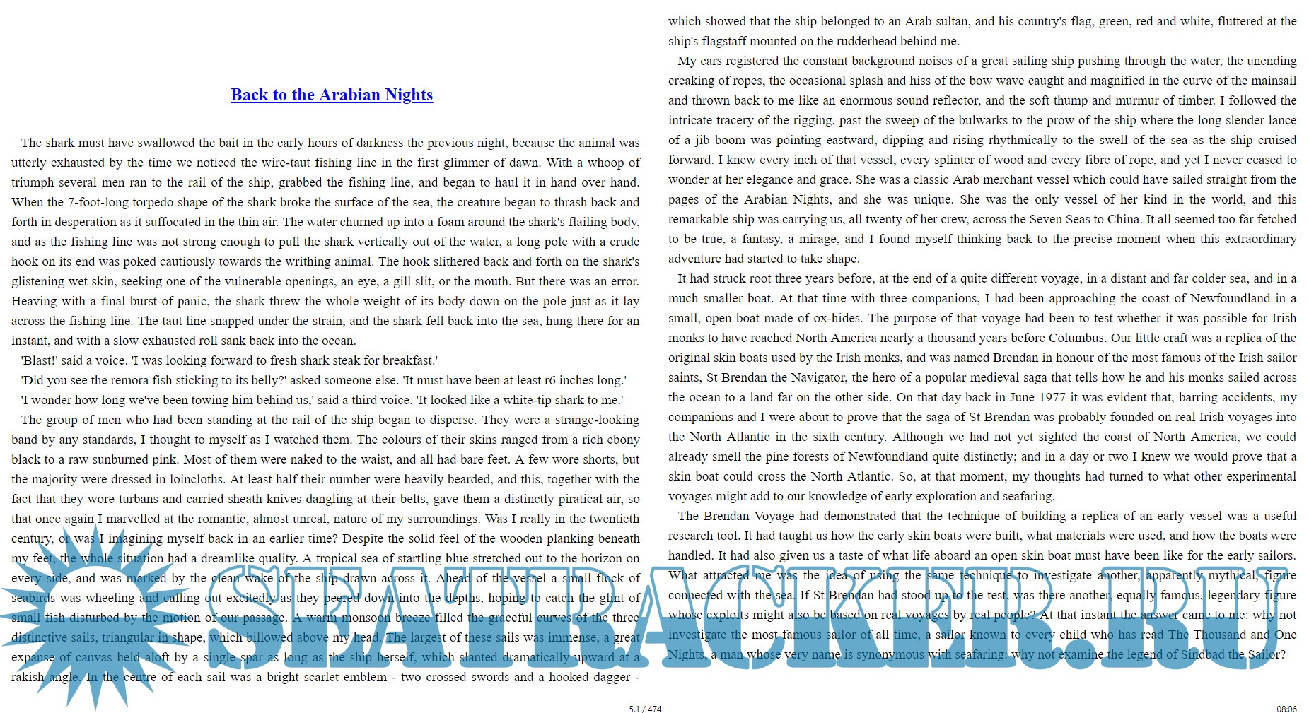 Year: 2018 Language: english Author: Tim Severin Genre: Fiction Publisher: Lume Books Format: EPUB Quality: eBook Pages count: 239 Description: Sindbad. Perhaps the greatest fictional sailor of them all. But could his amazing voyages, recounted in the The Book of One Thousand and One Nights, be recreated in the modern world? Or were they just the stuff of legend? Tim Severin was determined to find out. After three years of research, he created a precise replica of an early Arab trading ship. Not a single nail was used in her construction - her planks were held together with 400 miles of coconut cord. With a crew of twenty, including eight Omani sailors, his ship Sohar (named after the town said to have been Sindbad’s birthplace) completed a 6,000 mile journey by way of India, Sri Lanka, and across the Indian Ocean to Sumatra and Singapore, and finally through the China Sea to a tumultuous welcome in Canton. Along the way, the crew had to swim among sharks while repairing the rudder, catch rainwater to drink while becalmed in the doldrums, and endure the battering of violent seas off the coast of Vietnam. 'The Sindbad Voyage' is the remarkable story of that amazing journey. An enthralling saga of the 7 ½ month voyage, it is one of the most memorable sailing stories of modern times.