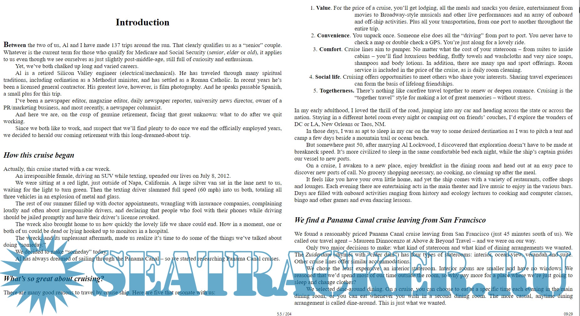 Come along with them as they share intimate details of their 17-day odyssey from San Francisco to Fort Lauderdale via the Panama Canal. Sunny provides the facts. Al adds delicious humor. A perfect recipe for cruise travel fun!