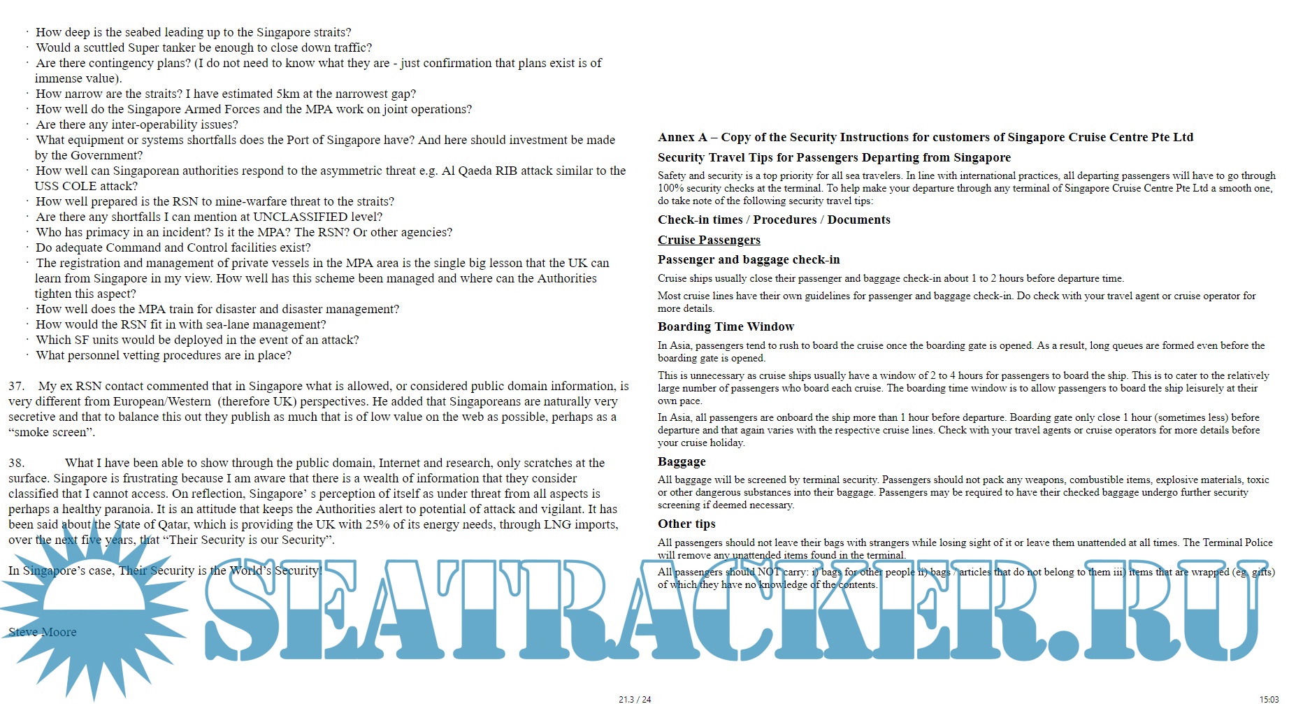 Description: Maritime Security of Singapore is essential to World trade. Steve Moore's dissertation covers essential elements of this subject.