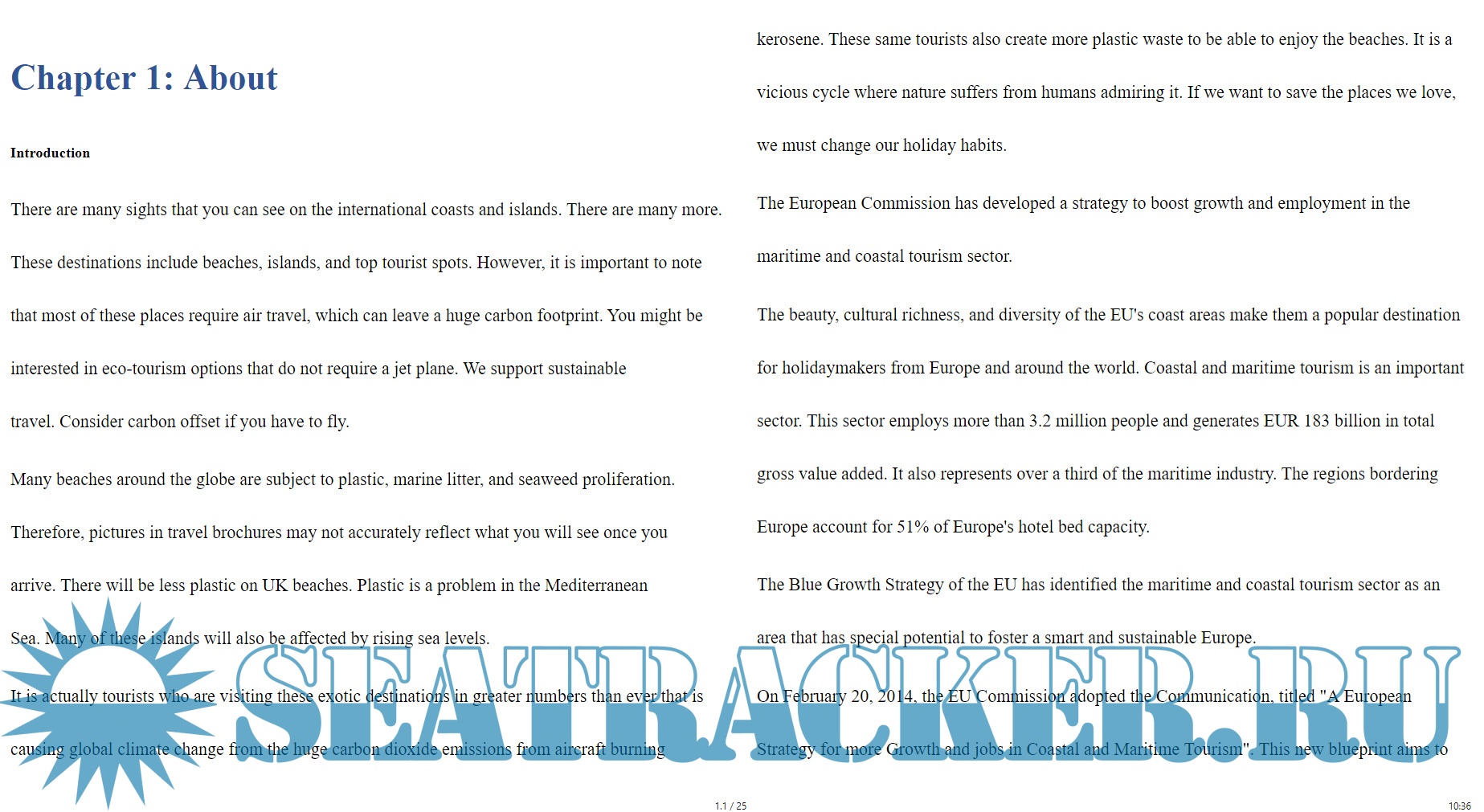 Year: 2021 Language: english Author: Reeta Pal Format: EPUB Quality: eBook Pages count: 25 Description: There are many sights that you can see on the international coasts and islands. There are many more. These destinations include beaches, islands, and top tourist spots. However, it is important to note that most of these places require air travel, which can leave a huge carbon footprint. You might be interested in eco-tourism options that do not require a jet plane. We support sustainable travel. Consider carbon offset if you have to fly. Many beaches around the globe are subject to plastic, marine litter, and seaweed proliferation. Therefore, pictures in travel brochures may not accurately reflect what you will see once you arrive. There will be less plastic on UK beaches. Plastic is a problem in the Mediterranean Sea. Many of these islands will also be affected by rising sea levels. It is actually tourists who are visiting these exotic destinations in greater numbers than ever that is causing global climate change from the huge carbon dioxide emissions from aircraft burning kerosene. These same tourists also create more plastic waste to be able to enjoy the beaches. It is a vicious cycle where nature suffers from humans admiring it. If we want to save the places we love, we must change our holiday habits. The European Commission has developed a strategy to boost growth and employment in the maritime and coastal tourism sector. The beauty, cultural richness, and diversity of the EU's coast areas make them a popular destination for holidaymakers from Europe and around the world. Coastal and maritime tourism is an important sector. This sector employs more than 3.2 million people and generates EUR 183 billion in total gross value added. It also represents over a third of the maritime industry. The regions bordering Europe account for 51% of Europe's hotel bed capacity. The Blue Growth Strategy of the EU has identified the maritime and coastal tourism sector as an area that has special potential to foster a smart and sustainable Europe. On February 20, 2014, the EU Commission adopted the Communication, titled "A European Strategy for more Growth and jobs in Coastal and Maritime Tourism". This new blueprint aims to increase European coastal and maritime tourism and unlock its potential. The strategy is being implemented by the Commission through an action plan that includes 14 actions.
