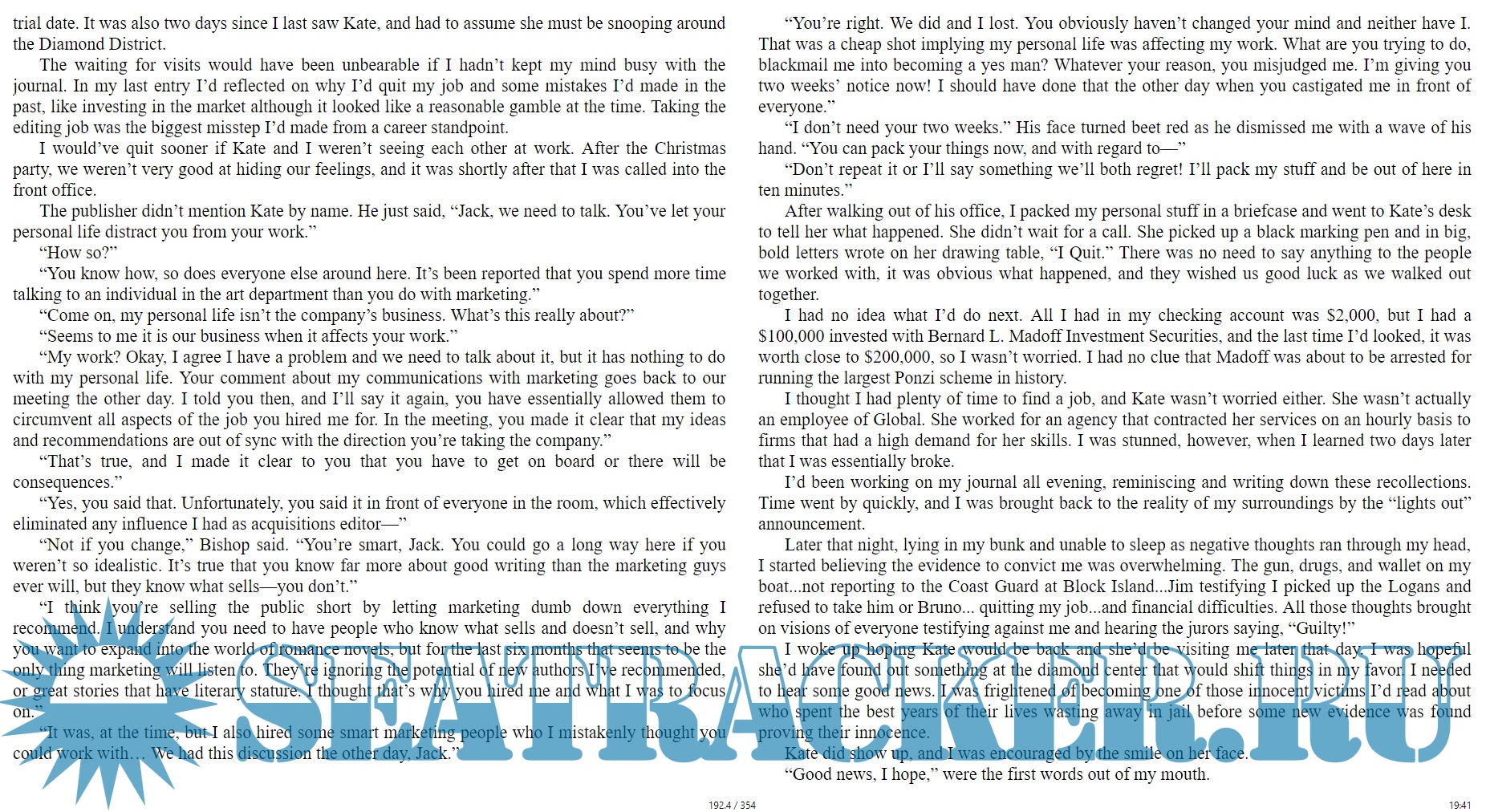 Year: 2016 Language: english Author: Pat Wiley Genre: Fiction Publisher: First Steps Publishing Edition: 1st (Revised) ISBN: 978-1-937333-25-6 Format: EPUB Quality: eBook Pages count: 354 Description: My name is Jack Quinn. I’m in prison, awaiting trial for murder on the high seas. The nightmare leading to my arrest began while sailing alone to the island of Bermuda. I swear, with God as my witness, I was coming to aid a boat in distress. I am writing this in the hope someone may know something––anything to help prove I’m innocent.***Freelance writer, Jack Quinn, has lost everything - his job, his life savings and now his freedom. What turned out to be an opportunity to fulfill his dream of sailing single- handed from New England to Bermuda has transformed into a nightmare. Barely surviving a hurricane, Jack offers aid to survivors on a dis-masted sailboat. But something is wrong. After arriving back to the mainland, Jack’s arrested and finds himself the prime suspect in an extensive FBI investiga- tion of smuggling, money laundering and murder. Overwhelming evidence mounts as Jack relies on two women, one of whom risks her life, to find corroborating evidence to his story and track down the only witness in his favor––a humpback whale.