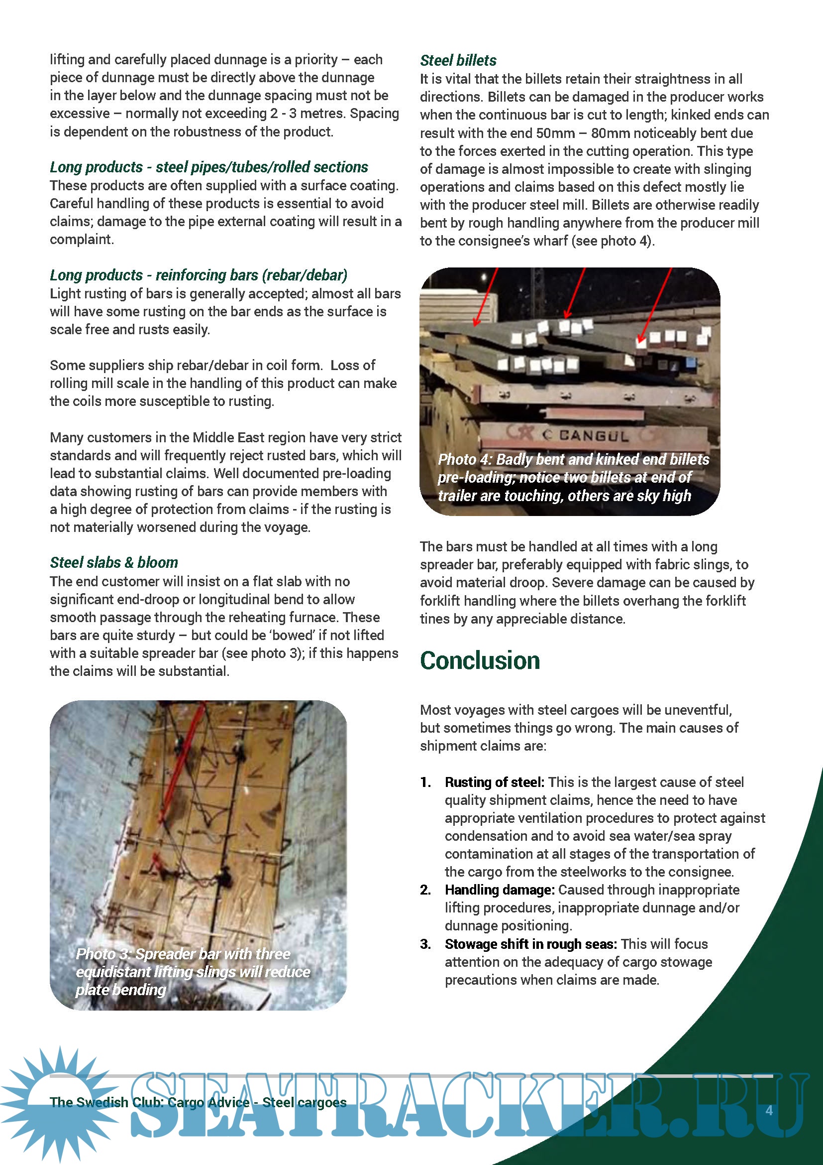 Year: 2022 Language: english Author: The Swedish Club Genre: Guide Format: PDF Quality: eBook Pages count: 5 Description: The Swedish Club recently launched a cargo advice Guide, focusing on Steel cargoes shipments. Steel shipments typically involve substantial tonnages, with steel products often the sole cargo on the voyage. Steel shipments can involve many product types on the same voyage and may load from more than one port. All steel will rust in the presence of water. Sea water wetting is particularly damaging with a rate of steel oxidation some 10 times higher than from fresh water alone. There is no schedule for steel coils in the International Maritime Solid Bulk Cargoes (IMSBC) Code. Claims arising from the shipment of steel coils tend to be significant and therefore great care has to be taken to ensure that the condition of the loaded product is scrutinised and meticulously recorded and that all coils are stowed in an acceptable manner. It is vital that comprehensive records and high-quality photographs at each stage of the operations/journey, with date and time, are maintained.