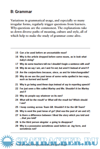 Description: David Crystal answers fifty questions about language usage, from general enquiries to specific points of grammar, pronunciation, orthography, vocabulary, idiom, and style. In this compact, user-friendly book, David Crystal draws on his extensive knowledge and experience to answer questions from English language teachers and learners from around the world. The book covers topics ranging from general enquiries about the language as a whole to specific points of grammar, pronunciation, orthography, vocabulary, idiom and style. The author's responses are illustrated by personal anecdotes, placed within historical and literary context and supported by research and corpus data to provide unique, authentic insights.