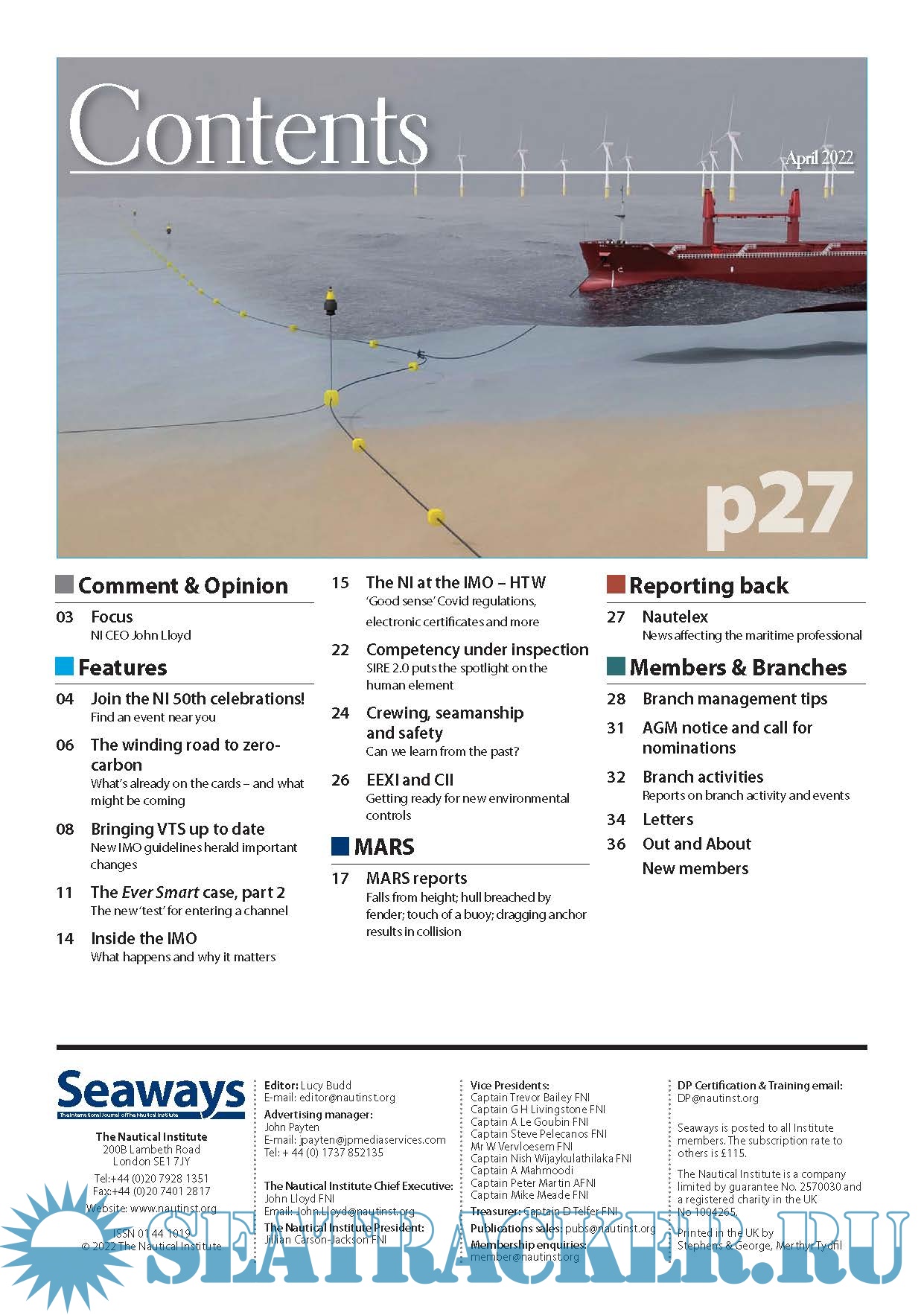 Seaways Recognised as one of the leading maritime journals, Seaways is sent out to all members monthly. It is the international journal of The Nautical Institute and has the most vibrant professional correspondence section to be found anywhere in the industry.