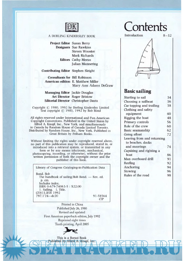 Year: 2005 Language: english Author: Bob Bond Genre: Handbook Edition: 10th Format: PDF Quality: Scanned pages Pages count: 353 Description: Newly updated and now in paperback, this backlist classic contains 2,000 diagrams and photos enabling you to visualize every sailing procedure and maneuver; reflects the latest word on procedures, techniques, and equipment. 48 pages of full-color photos.