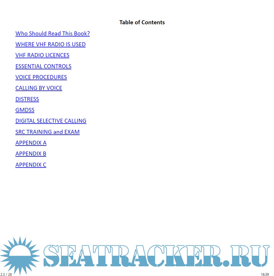 Description: This quick-start guide to VHF Marine Radio teaches skippers and crews the essentials of radio use afloat. You must have a licence for the equipment and one for the operator: this guide tells you how to obtain these licences and what you must do to qualify for the VHF Short Range Certificate (SRC). It also explains how the radio is used in Routine and Distress situations, with actual sample radio conversations. You will learn how Digital Selective Calling (DSC), introduced with the GMDSS, can automate calling of other vessels and shore stations. You find how different radio channels are allocated to different purposes and understand the major controls found on every VHF DSC Radio. This book offers suggestions for other resources which can help you make the most of your investment in marine radio, and help you to attain the all-important Radio Licence, to stay safe and legal.