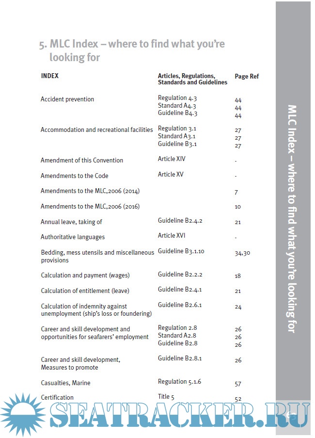 Description: The Maritime Labour Convention, 2006 (MLC), otherwise known as the Seafarers’ Bill of Rights, incorporates and builds on sixty eight existing maritime labour conventions and recommendations, as well as more general fundamental principles, to ensure decent working and living conditions for all seafarers. A list of these conventions is included for reference at the end of this book. Some important conventions not included are those relating to seafarers’ identity documents (ILO 108 and 185) and pensions (ILO 71).