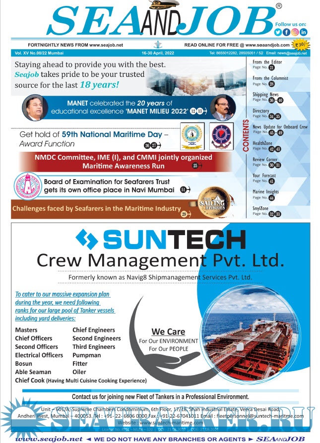 Sea and Job is also a medium for the shipping/ manning companies to advertise marine jobs and also to promote their organization by publicizing internal activities like seminars, sports events and parties.Some notable endeavors of the magazine include the Know Your Recruiter Column, the Sailing Episodes Column and the Marine Insights section. The consistent efforts and the dedication to provide extraordinary services to the industry has resulted in the magnifying popularity and patronage of Sea and Job.