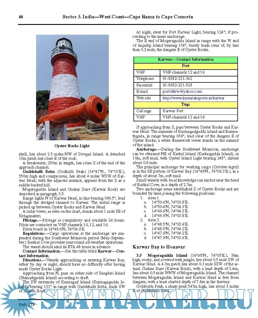 Year: 2022 Language: english Author: NGIA Genre: Documentation Edition: 15th Format: PDF Quality: eBook Pages count: 330 Description: Pub. 173, Sailing Directions (Enroute) India and the Bay of Bengal, Fifteenth Edition, 2022, is issued for use in conjunction with Pub. 160, Sailing Directions (Planning Guide) South Atlantic Ocean and Indian Ocean. The companion volumes are Pubs. 171, 172, 174, and 175. Digital Nautical Chart 3 provides electronic chart coverage for the area covered by this publication. This publication has been corrected to 26 March 2022, including Notice to Mariners No. 13 of 2022.