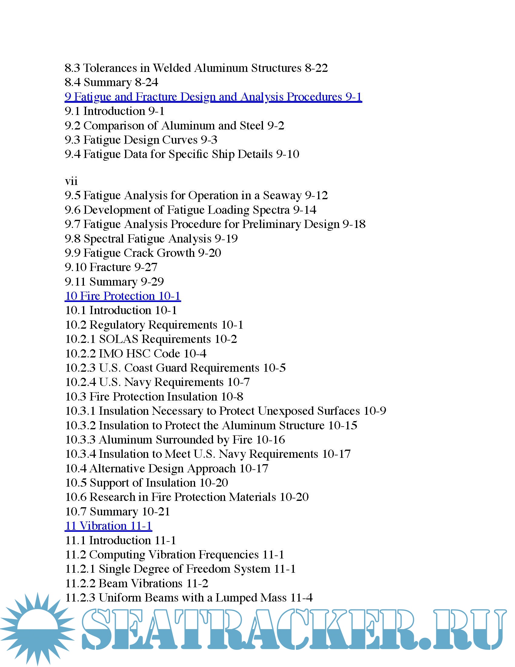 The SSC has sponsored this project to develop an aluminum marine structure design and fabrication guide. The guide addresses the following subject areas: material characteristics and properties, structural design, fatigue design and analysis procedures, typical structural details used for aluminum, welding and fabrication of aluminum, joining to steel structure, residual stresses and distortion of aluminum structure, fire protection, vibration, mitigating slam loads, maintenance and repair of aluminum structures, emerging technologies such as friction stir welding, and research needs.