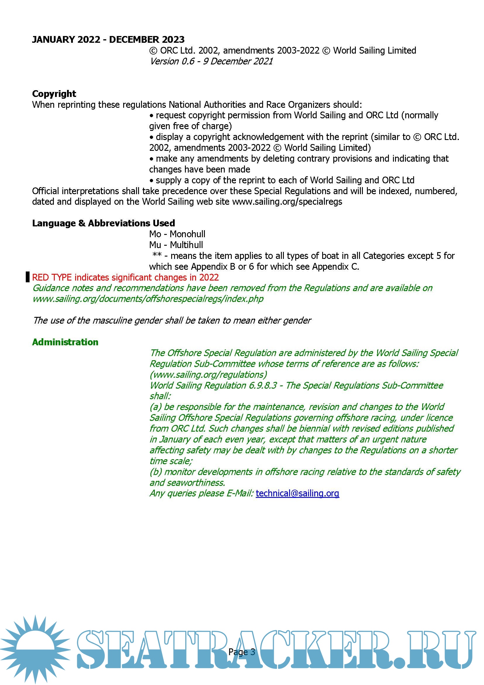 World Sailing Offshore Special Regulations 2022-2023