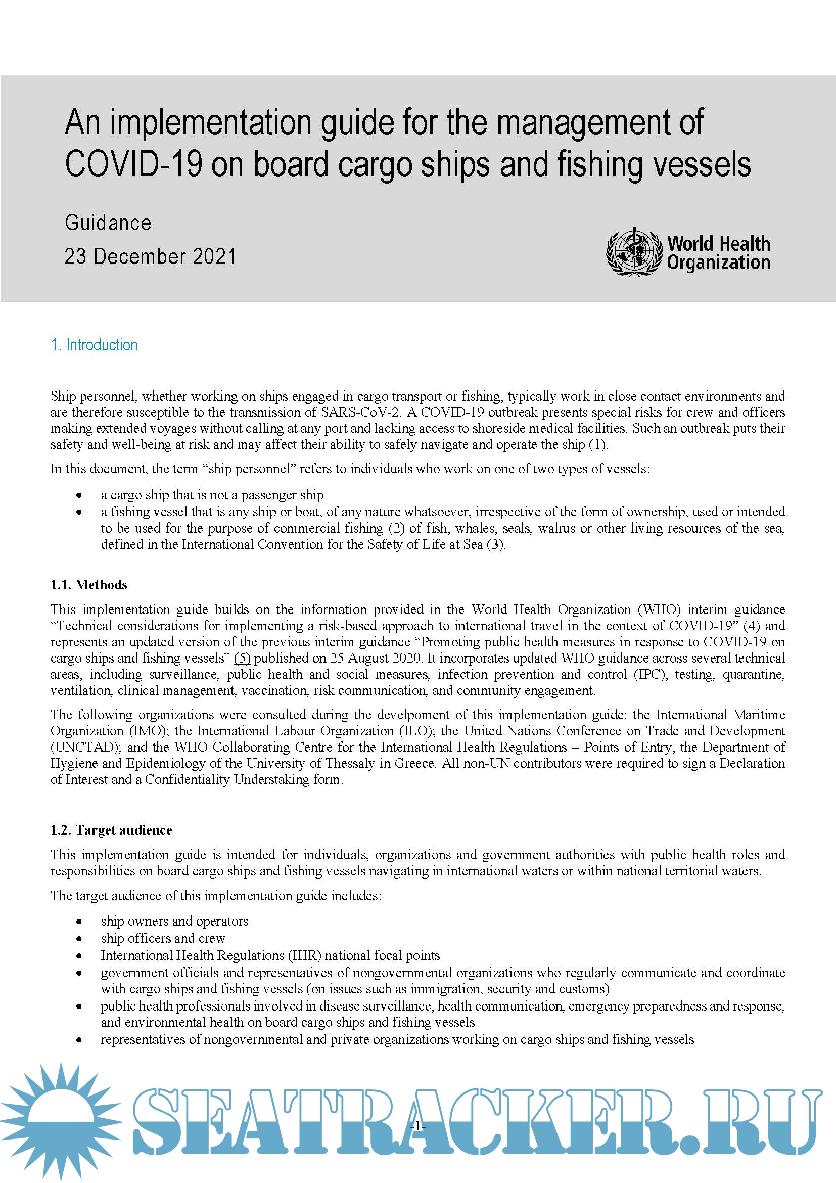 An Implementation Guide for the Management of COVID-19 on board cargo ships and fishing vessels