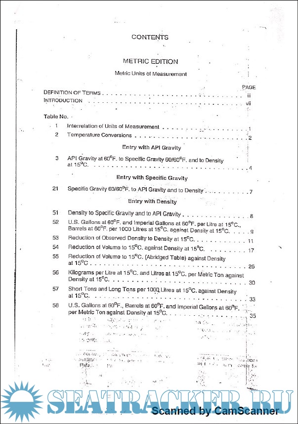 Year: 2003 Language: english Author: Bhandarkar Publications Genre: Reference book Publisher: Bhandarkar Publications Format: JPEG Quality: Photo of pages Pages count: 43 Description: This collection of tables has been prepared in fulfillment of a long expressed need for a collection of uniformily conceived and executed tables required for calculation of quantities of petroleum and petroleum products based on the several common units of measurement. These tables are the result of the close co-operation between the Institute of Petroleum (London) and committee D-2 on Petroleum products and lubricants, of the American Society for Testing materials. In order that the metric system of measurement might recieve equal consideration with the systems used in the United States and the United Kingdom, a conference was arranged in Brussels in 1949 at which official representatives of corresponding groups in countries using the metric system were invited to express their need for inclusion in the collection. Additional info: Selected pages of ASTM tables as permitted by the Directorate General of Shipping, India for examination purpose only.