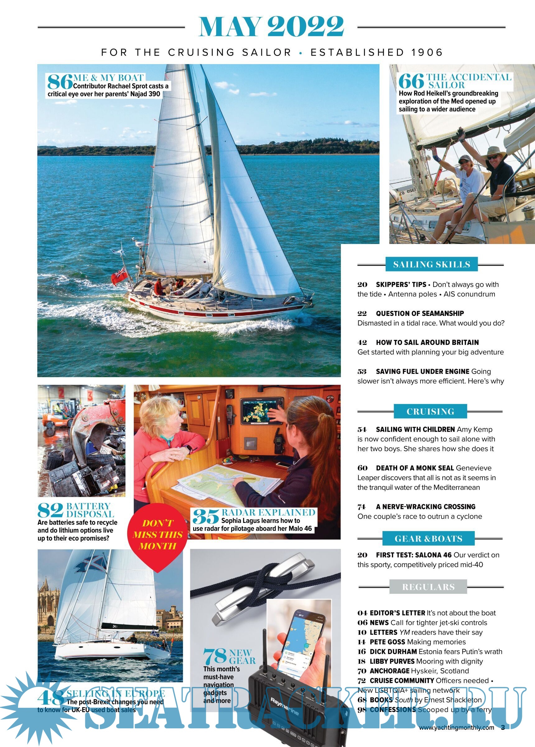 Inside the May 2022 issue of Yachting Monthly: How to sail round Britain: Routes, tidal gates, harbours & more, Radar pilotage masterclass: Find your way in any weather, night & day; Rod Heikell on the changing face of Med cruising and the new rules you need to know for buying and selling your boat in Europe..and more!