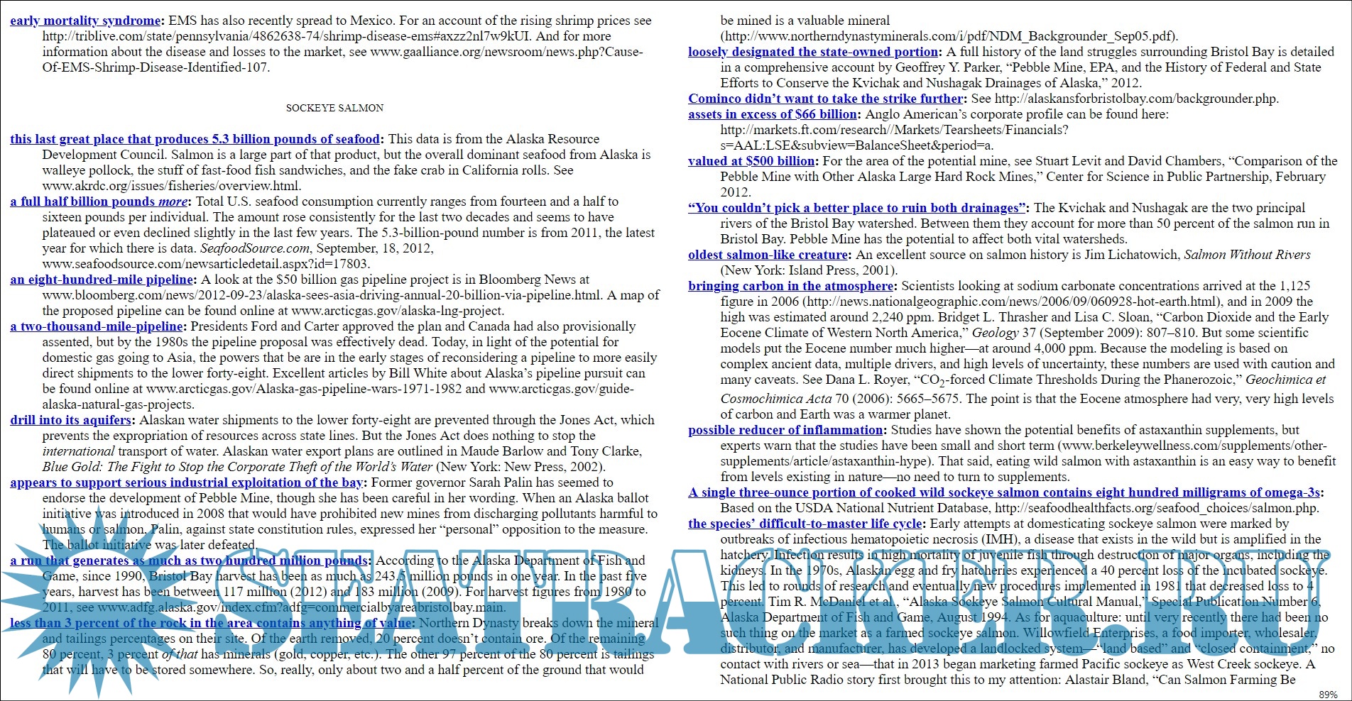 Finally, Greenberg visits Bristol Bay, Alaska, home to the biggest wild sockeye salmon run left in the world. A pristine, productive fishery, Bristol Bay is now at great risk: The proposed Pebble Mine project could under¬mine the very spawning grounds that make this great run possible. In his search to discover why this pre¬cious renewable resource isn’t better protected, Green¬berg encounters a shocking truth: the great majority of Alaskan salmon is sent out of the country, much of it to Asia. Sockeye salmon is one of the most nutritionally dense animal proteins on the planet, yet Americans are shipping it abroad.