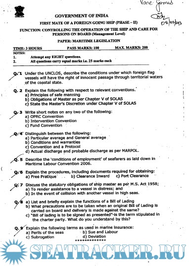 Question Paper Set for Phase II (Chief Mate F.G.) Mercantile Marine Department (MMD), India Examinations