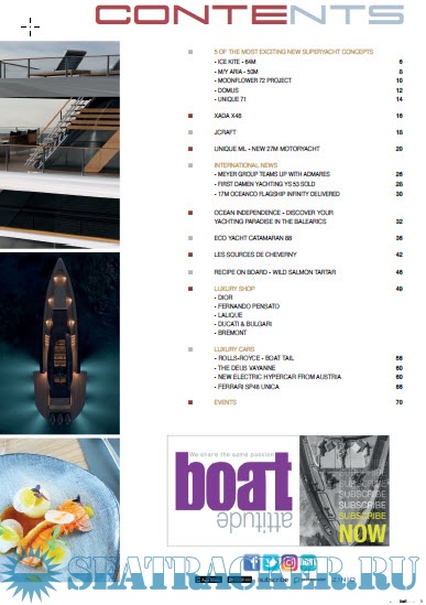Description: Since 2006, Boat Attitude magazine offers its exclusive readers access to the most luxurious yachts as well as the sumptuous associated lifestyle. From mega yachts to multihulls, sailing yachts and water toys…Boat Attitude brings its readers in the heart of the international world of pleasure boating. Eager to share the passion, Boat Attitude is available worldwide in hard copies and digital versions, and provides luxury yachting newsfeed on social networks.