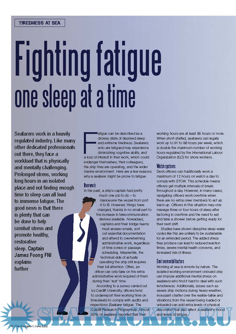 Fatigue is one of the most dangerous threats to a navigator onboard ship. Here are ten points to help you manage your levels of tiredness and fatigue...