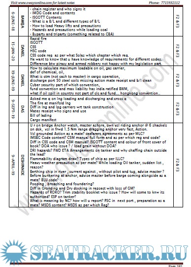 Year: 2022 Language: english Author: Oways Online Format: PDF Quality: eBook Pages count: 365 Description: Orals Question Bank for Chief Mate F.G. Mercantile Marine Department (MMD), India Examinations Segregated as per Functions / Surveyors/ Dates. Mumbai Surveyors. Additional info: Updated till May 2022.