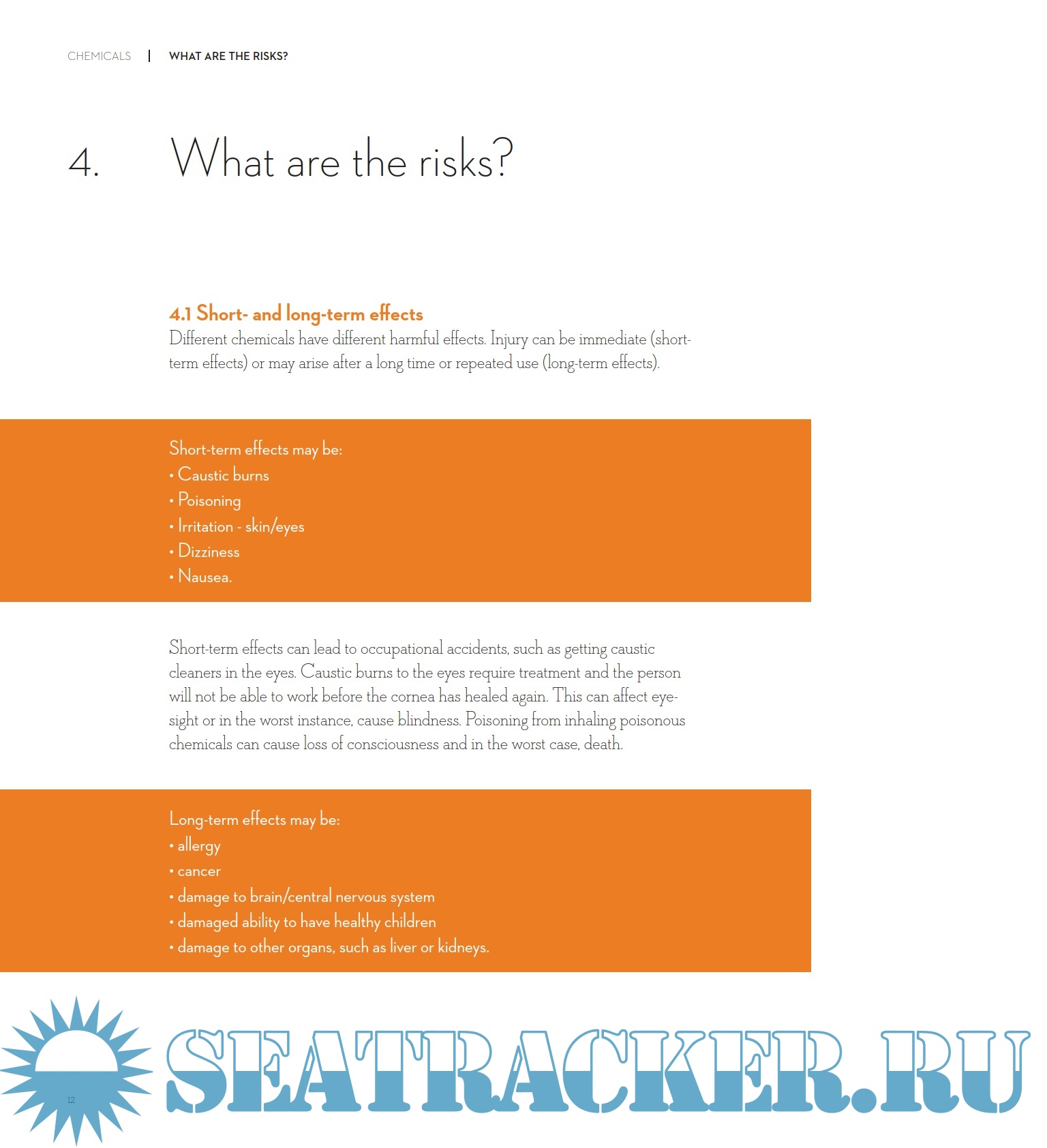 Year: 2012 Language: english Author: Seahealth Denmark Genre: Practical guide Publisher: Seahealth Denmark ISBN: 978-87-92084-25-5 Format: PDF Quality: eBook Pages count: 88 Description: Take care of yourself and others - from knowledge to practice. This instructor booklet tells you where you can find what you need to know about the chemicals you use and how you should use this knowledge to plan and carry out work so you do not get injured or suffer short or long-term harm.