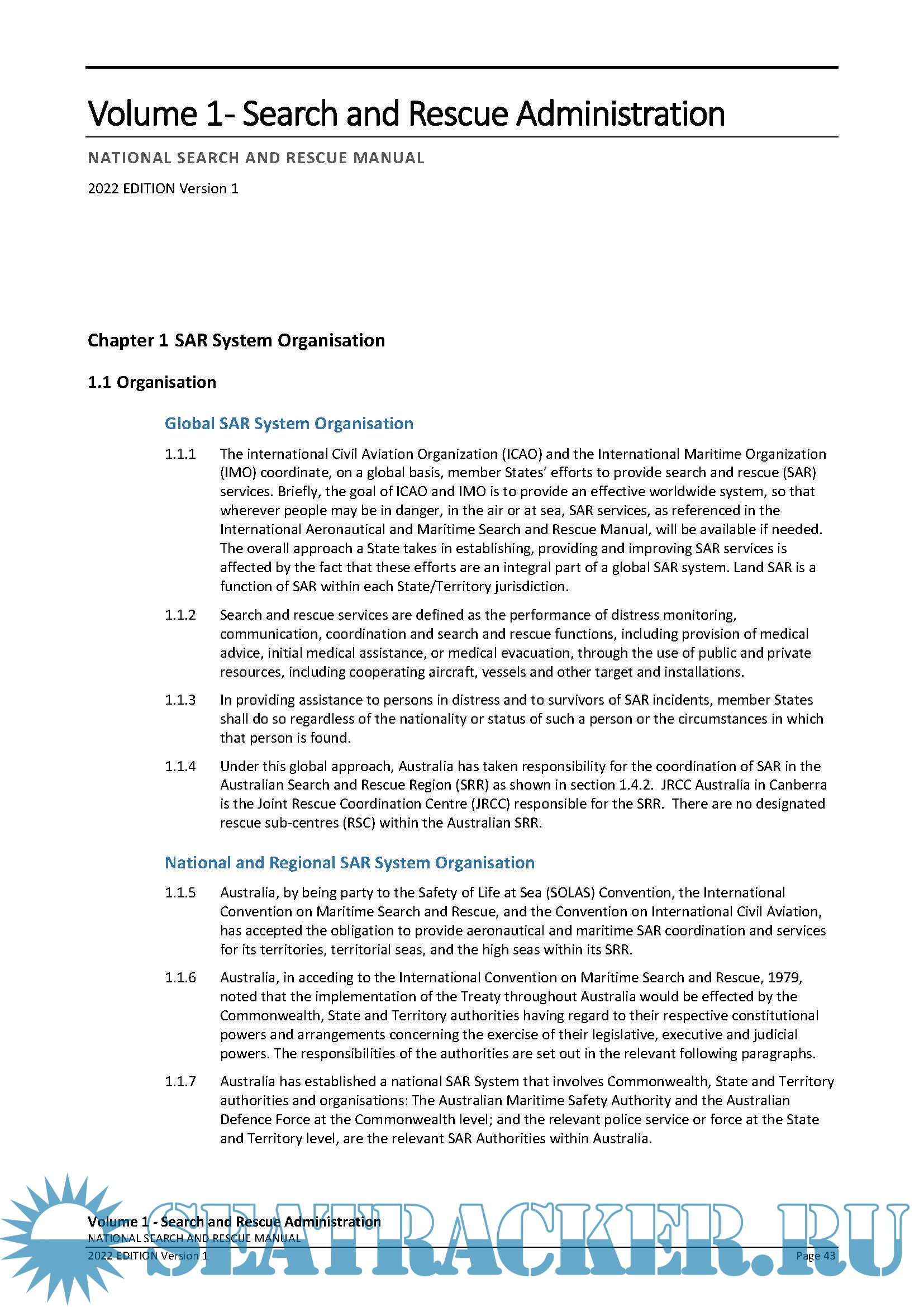 :*Volume 1 - Search and Rescue Administration