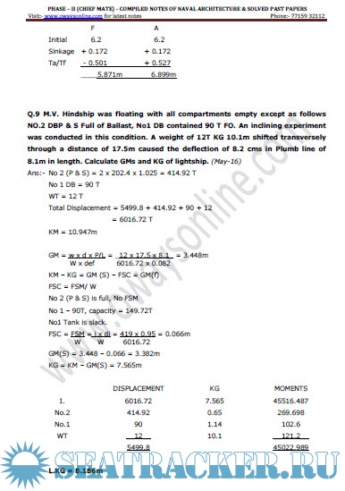 Phase II Naval Architecture - Solved Numericals from May 2016 to November 2017