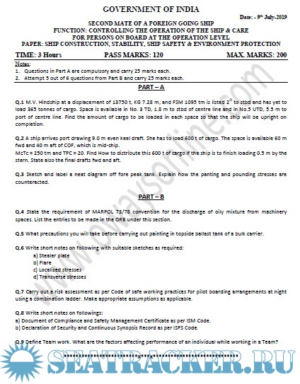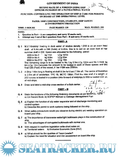 Description: 2nd Mate (F.G.) question paper sets for Mercantile Marine Department (MMD), India Exams.