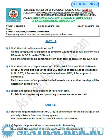Question Paper Set (2022-2016) for Second Mate (F.G.) Mercantile Marine Department (MMD), India Examinations