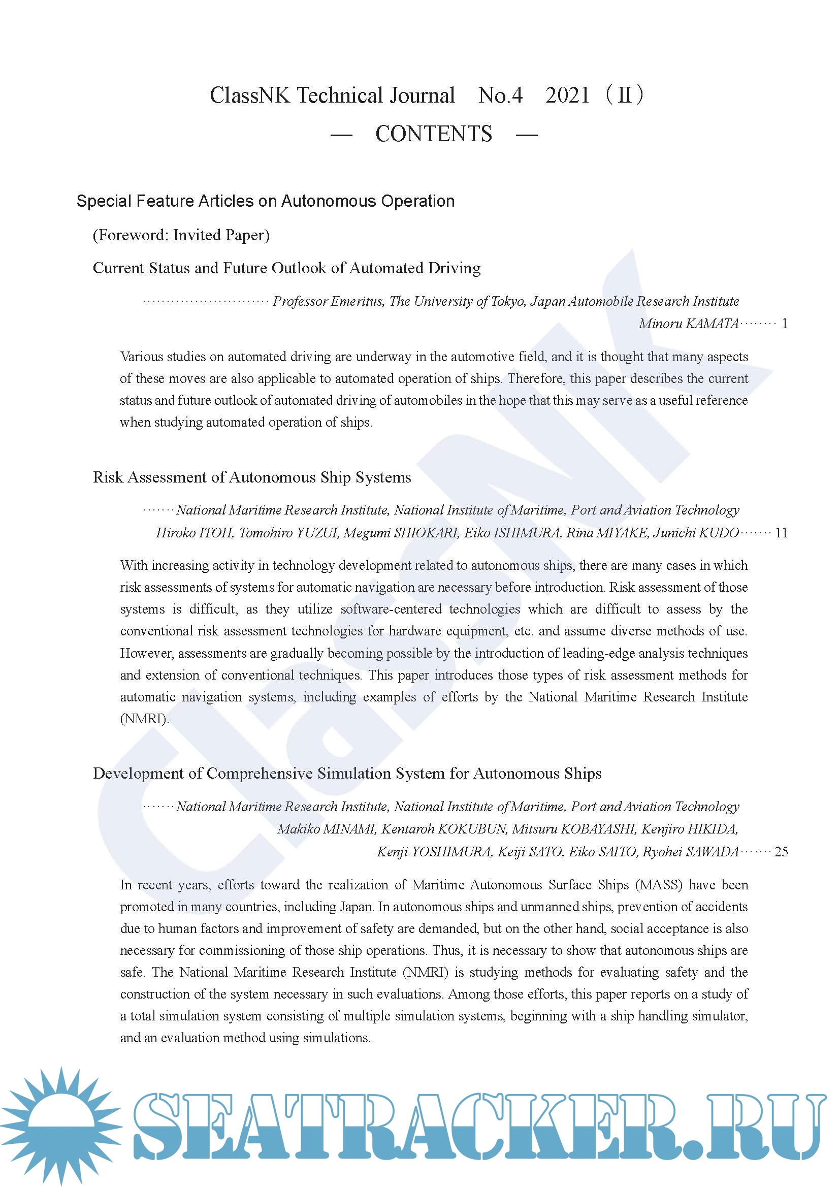 Class NK Technical Journal 2021 (Special Feature Articles on Autonomous Ships) - Various [2021, PDF]