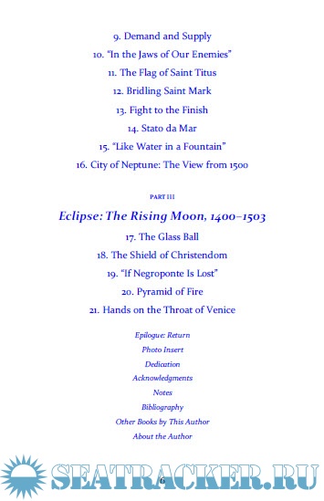 Drawing on firsthand accounts of pitched sea battles, skillful negotiations, and diplomatic maneuvers, Crowley paints a vivid picture of this avaricious, enterprising people and the bountiful lands that came under their dominion. Defiant of emperors, indifferent to popes, the Venetians saw themselves as reluctant freebooters, compelled to take to the open seas “because we cannot live otherwise and know not how except by trade.” From the opening of the spice routes to the clash between Christianity and Islam, Venice played a leading role in the defining conflicts of its time—the reverberations of which are still being felt today. Only an author with Roger Crowley’s deep knowledge of post-Crusade history could put these iconic events into their proper context.