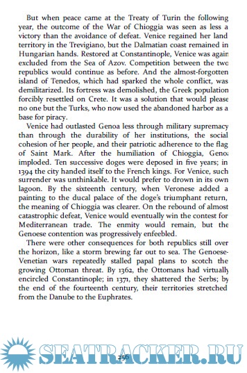 Year: 2012 Language: english Author: Roger Crowley Genre: History Publisher: Random House ISBN: 978-1400068203 Format: PDF Quality: eBook Pages count: 479 Description: The rise and fall of the Venetian empire stands unrivaled for drama, intrigue, and sheer opulent majesty. In City of Fortune, Roger Crowley, acclaimed historian and New York Times bestselling author of Empires of the Sea, applies his narrative skill to chronicling the astounding five-hundred-year voyage of Venice to the pinnacle of power. Tracing the full arc of the Venetian imperial saga for the first time, City of Fortune is framed around two of the great collisions of world history: the ill-fated Fourth Crusade, which culminated in the sacking of Constantinople and the carve-up of the Byzantine Empire in 1204, and the Ottoman-Venetian War of 1499–1503, which saw the Ottoman Turks supplant the Venetians as the preeminent naval power in the Mediterranean. In between were three centuries of Venetian maritime dominance—years of plunder and plague, conquest and piracy—during which a tiny city of “lagoon dwellers” grew into the richest place on earth. Drawing on firsthand accounts of pitched sea battles, skillful negotiations, and diplomatic maneuvers, Crowley paints a vivid picture of this avaricious, enterprising people and the bountiful lands that came under their dominion. Defiant of emperors, indifferent to popes, the Venetians saw themselves as reluctant freebooters, compelled to take to the open seas “because we cannot live otherwise and know not how except by trade.” From the opening of the spice routes to the clash between Christianity and Islam, Venice played a leading role in the defining conflicts of its time—the reverberations of which are still being felt today. Only an author with Roger Crowley’s deep knowledge of post-Crusade history could put these iconic events into their proper context. Epic in scope, magisterial in its understanding of the period, City of Fortune is narrative history at its most engrossing.