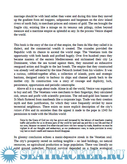 Year: 2011 Language: english Author: Roger Crowley Genre: History Publisher: Faber & Faber ISBN: 978-0571245949 Format: PDF Quality: eBook Pages count: 390 Description: A magisterial work of gripping history, "City of Fortune" tells the story of the Venetian ascent from lagoon dwellers to the greatest power in the Mediterranean - an epic five hundred year voyage that encompassed crusade and trade, plague, sea battles and colonial adventure. In Venice, the path to empire unfolded in a series of extraordinary contests - the sacking of Constantinople in 1204, the fight to the finish with Genoa and a desperate defence against the Turks. Under the lion banner of St Mark, she created an empire of ports and naval bases which funnelled the goods of the world through its wharfs. In the process the city became the richest place on earth - a brilliant mosaic fashioned from what it bought, traded, borrowed and stole. Based on first hand accounts of trade and warfare, seafaring and piracy and the places where Venetians sailed and died, "City of Fortune" is narrative history at its finest. Beginning on Ascension Day in the year 1000 and ending with an explosion off the coast of Greece - and the calamitous news that the Portuguese had pioneered a sea route to India - it will fascinate anyone who loves Venice and the Mediterranean world. Additional info: About the Author: Roger Crowley read English at Cambridge. He has had a varied career as a teacher and publisher and is the author of three books on the history of the Mediterranean. He lives in Gloucestershire and now writes full time. His website address is www.rogercrowley.co.uk