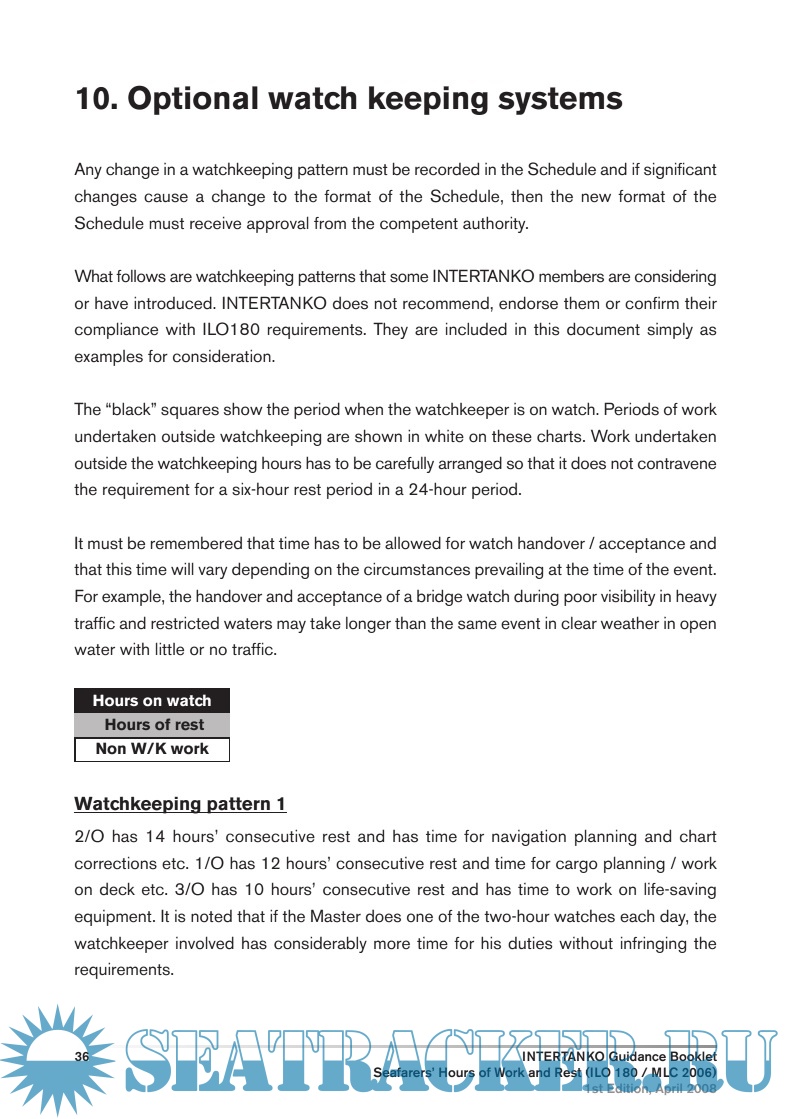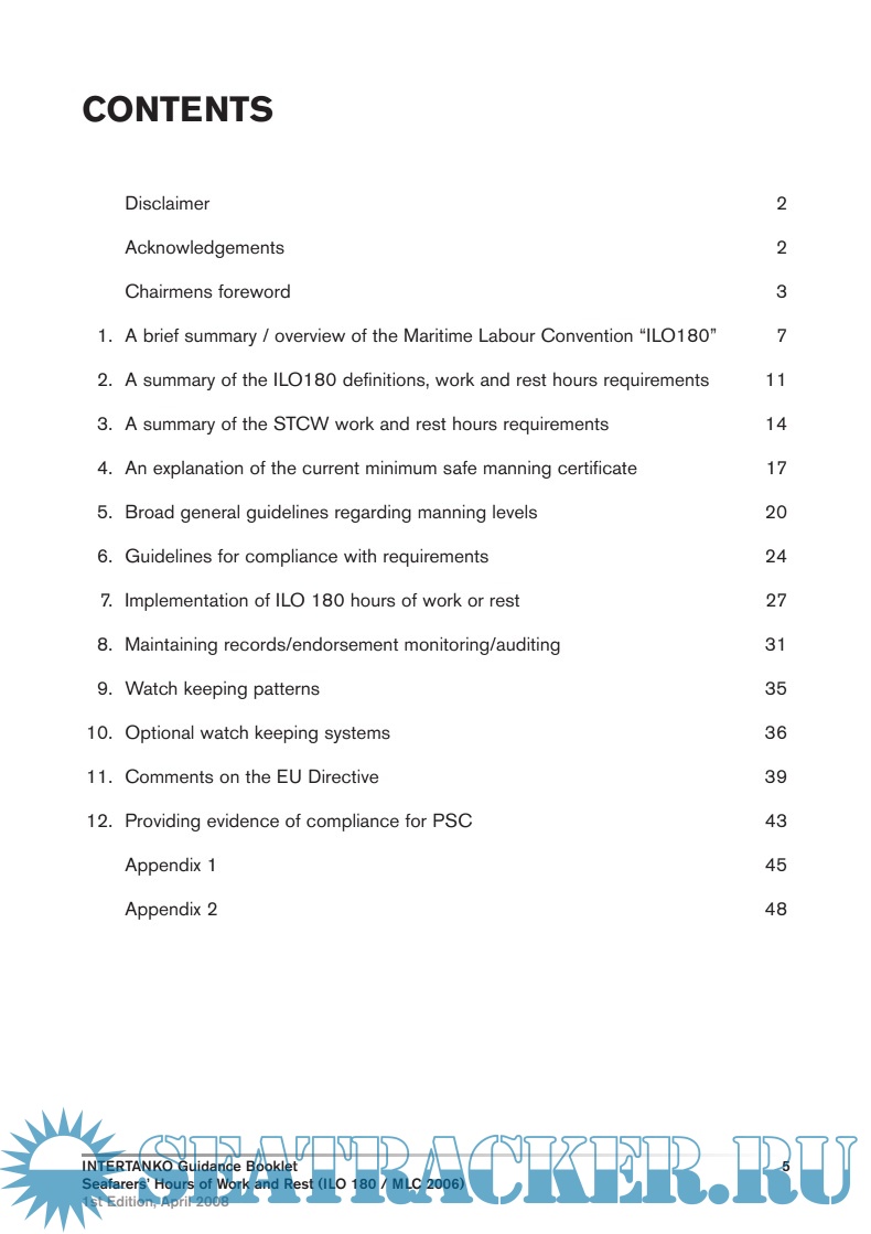 Year: 2008 Language: english Author: INTERTANKO Genre: Guide Edition: 1st Format: PDF Quality: OCR without errors Pages count: 56 Description: These guidelines assist Administrations, shipowners and seafarers develop shipboard working arrangements and records of seafarers’ hours of work or hours of rest as required by the Seafarers’ Hours of Work and the Manning of Ships Convention, 1996. This publication also takes into account the provisions on establishment of rest periods for watchkeeping personnel contained in the International Convention on Standards of Training, Certification and Watchkeeping for Seafarers, 1978, as amended.