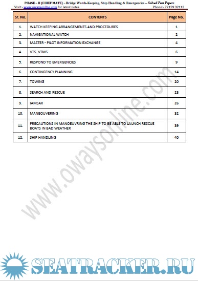 Year: 2019 Language: english Author: Unknown Publisher: Oways Online Format: PDF Quality: eBook Pages count: 47 Description: Chief Mates (F.G.) Phase II Subject: Bridge Watchkeeping, Ship Handling and Emergencies Solved (2021-2019) from Past Question Papers of Mercantile Marine Department (MMD), India Examinations for Phase II (Chief Mate F.G.)