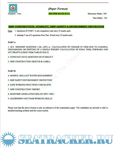 Question Paper Set for Second Mate (F.G.) Mercantile Marine Department (MMD), India Examinations -…