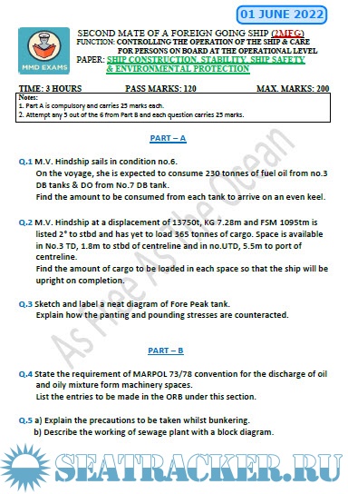 Question Paper Set for Ship Construction, Stability, Ship Safety & Environmental Protection (June…