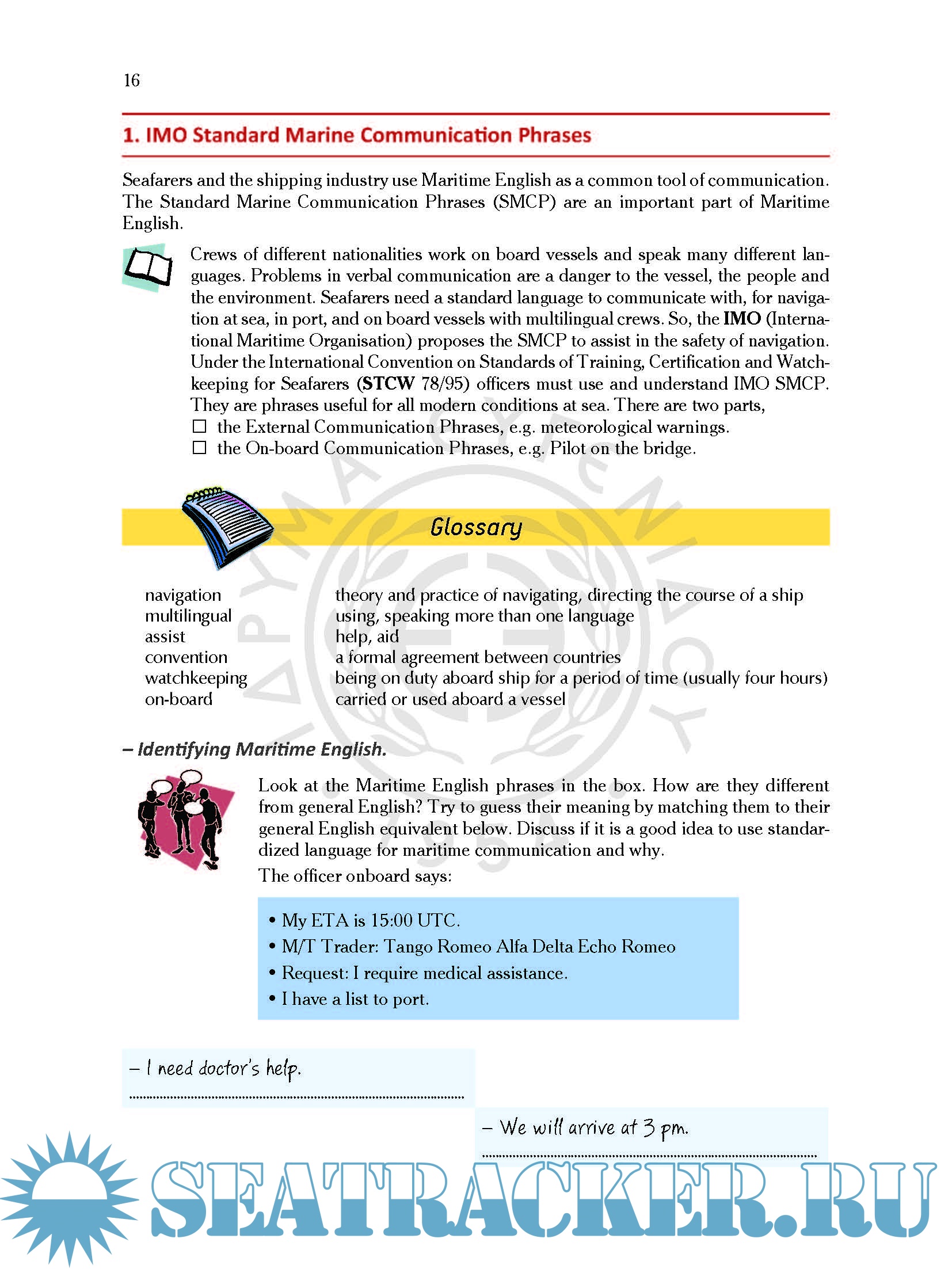 Organization (IMO) (Model Course 3.17 for Maritime English) the book Maritime English Volume I