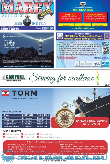 The Leading magazine for seafarers to locate Ship-board Employment opportunities, Training Institutes, Shipping companies.