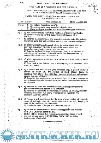 Phase I - Chief Mate (F.G.) question paper sets for Mercantile Marine Department (MMD), India Exams.