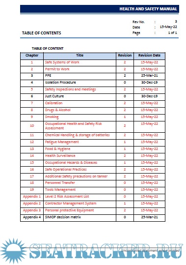 Year: 2022 Language: english Author: Synergy Maritime Pvt. Ltd. Genre: Manual Edition: IV Format: PDF Quality: eBook Pages count: 288 Description: Safety is a shared responsibility. As an employee, you have a duty to care and responsible for: ▪ Safety for yourself and your mates ▪ Care towards the vessel and the protection of the Environment. Synergy expects all the employees to operate the vessels, at all times, in compliance with these concepts: ▪ No business objective will be pursued at the expense of safety. ▪ Accidents and injuries are preventable; all steps should be taken to ensure they do not occur. ▪ No job is well done unless it is safely done. You should be committed to the concept that getting the job done and safety go handin-hand, and do not perceive yourself as being under pressure to cut corners or reduce safety margins, to meet schedules or other targets. Remember, you are under no such pressure, and you are not serving the Company’s best interests if you do so. Furthermore, you may well be placing yourself in a position for disciplinary action. You should remember that a single major incident has the potential to ruin the Company, and completely outweighs the possible benefits from taking unnecessary risks.
