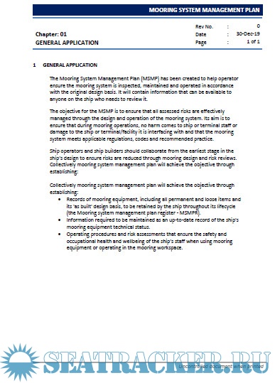 Description: The Mooring System Management Plan (MSMP) has been created to help operator ensure the mooring system is inspected, maintained and operated in accordance with the original design basis. It will contain information that can be available to anyone on the ship who needs to review it.